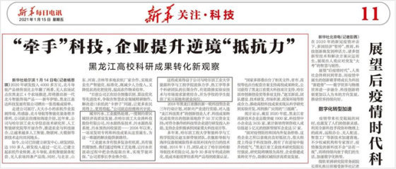 2021年1月15日,新华日报电讯报道了关于《“牵手”科技,企业提升逆境“抵抗力”》的新闻,新闻中报...