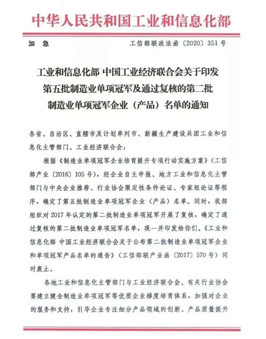 返回列表恭贺哈尔滨工大金涛科技股份有限公司产品进入工信部单项冠军产品名单