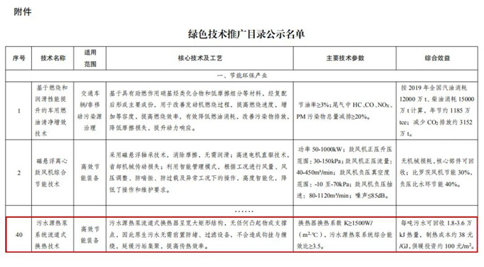 2020年12月14日,中华人民共和国国家发展和改革委员会网站公布了《绿色技术推广目录》,哈尔滨工大金涛科技股份有限公司(以下简称工大金涛)的污水源热泵系统流道式换热技术成功入选国家发改委公布的《绿色技术推广目录》。