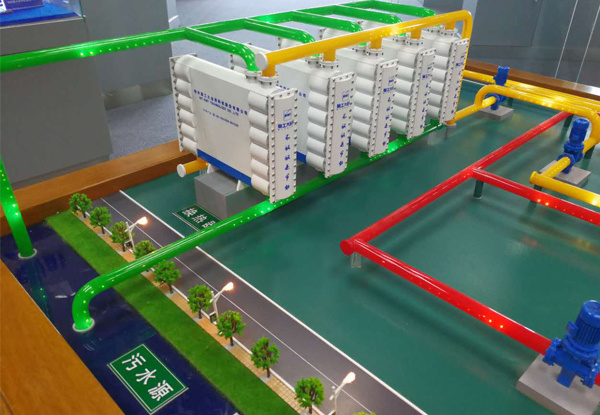 (图为:哈工大金涛污水源热泵系统运行演示模型。)