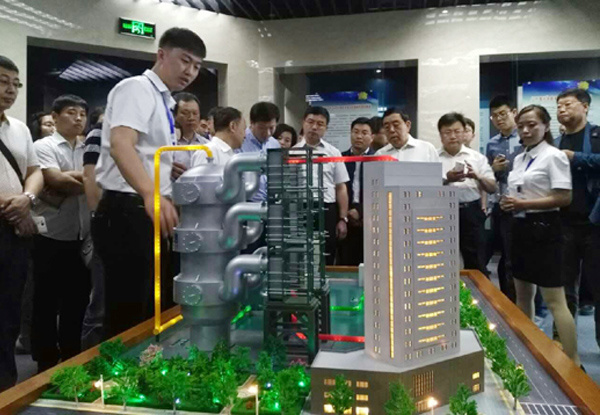 其中流道式污水源热泵系统模型演示了该系统运行的全过程,从原生污水引流到热量置换再到收集应用,将每一个重要环节都进行充分展示,再现了污水“变废为热”的过程。