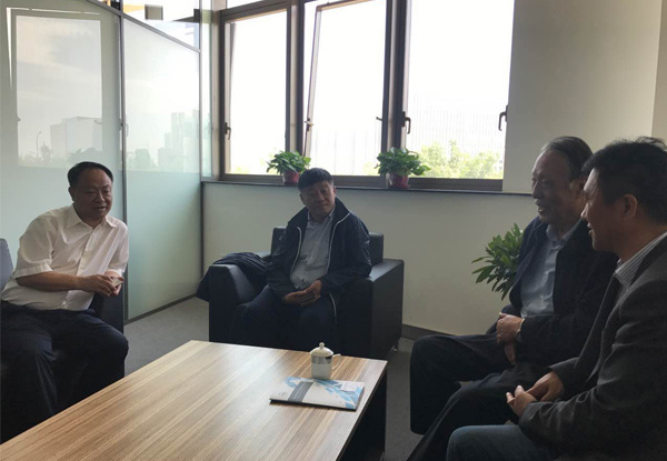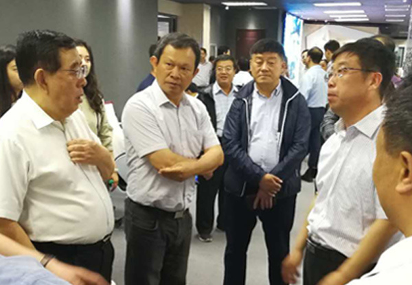 (图为:哈工大副校长郭斌,国家科技成果网主任吴昌全,太原科技局技术转移促进中心主任李国忠,哈工大金涛董事长李金峰陪同参观。)