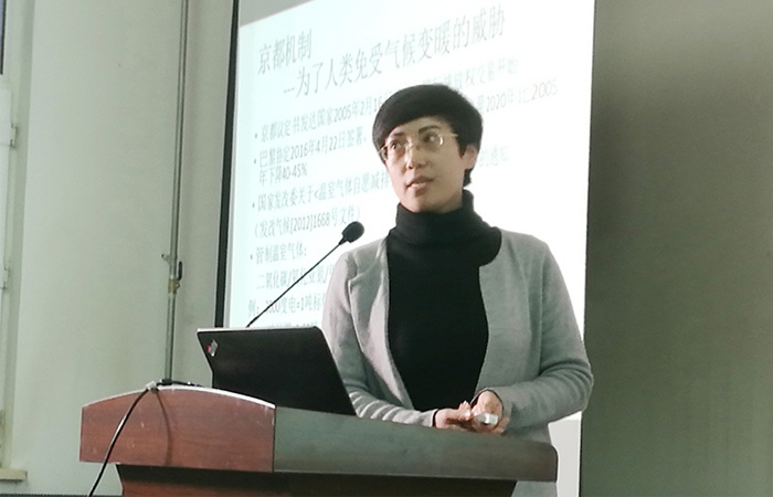 (图为:哈工大金涛辽宁办事处经理侯慧玲培训碳资产管理。)