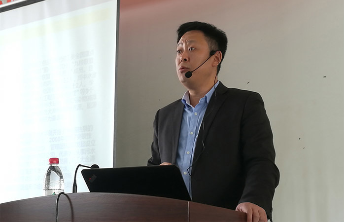 (图为:哈工大金涛总经理李伟深度解析污水源热泵及工业余热产品应用。)
