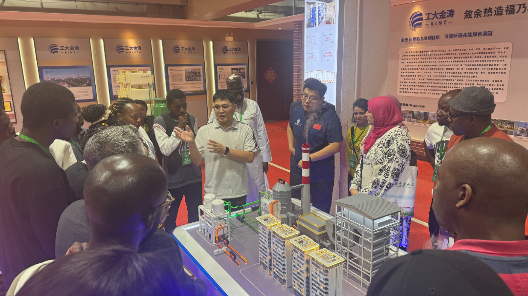 在技术交流环节,工大金涛研发团队紧扣中国 “碳达峰、碳中和” 战略目标与绿色低碳发展政策导向,结合示范项目长期运营实践案例,系统分享了污水源热泵系统、相变载热直驱式热泵系统、真空相变热能采集系统等核心技术。研修班官员结合本国在可再生能源开发、余热资源化利用中面临的实际需求,就政策制定、技术落地、成本控制等话题与研发团队深入探讨,其中南非和尼日利亚主管能源的官员表示回国后将向工大金涛发出正式邀请,为引进工大金涛的产品和技术铺平道路。